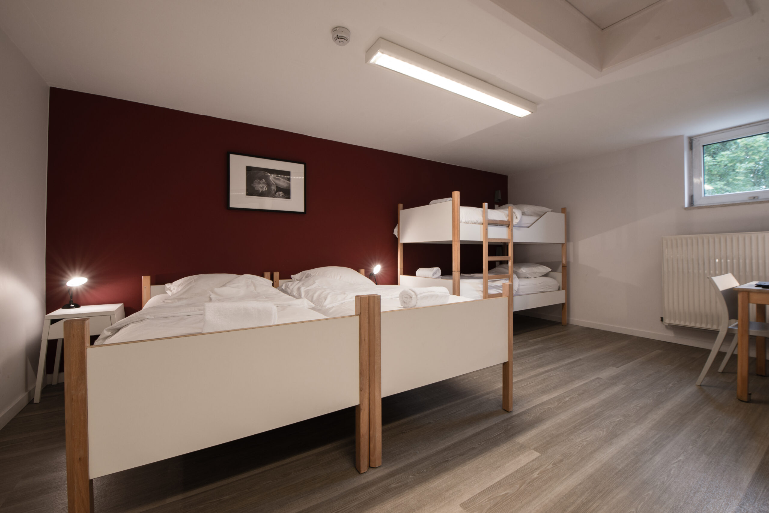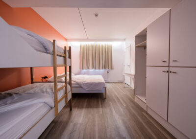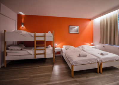 - Chambres à 4 lits pouvant être utilisées en chambres triples ou quadruples.